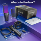 【چه چیزی دریافت خواهید کرد؟】1x ZealSound BKD-11 Pro (A68) RGB USB Gaming Microphone; 1xUSB-کابل (طول: 2 متر)؛ 1x آداپتور USB C برای دستگاههای نوع c، مانند لپتاپ، تلفن/تبلت Andriod دارای قابلیت OTG و آیفون 15 جدید، هوای iPad با پورت USB-C. 1x پایه شوک میکروفون. 1xMetal Pop Filter; پایه سه پایه تاشو پایدار 1x. 1xUser Manual