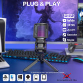 Explore the ultimate RGB microphone, crafted for gaming, tech setups, voice-overs, ASMR audio creation, studios, live streaming, content creation on YouTube/Facebook/TikTok, video recording, radio broadcasting, and podcasting.ect