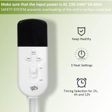 Intelligent overheat protection function prevents electric blanket from skin burns and heat stroke. After the end of the timing time, the appliance will stop heating automatically.