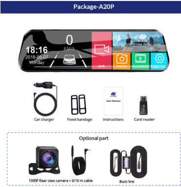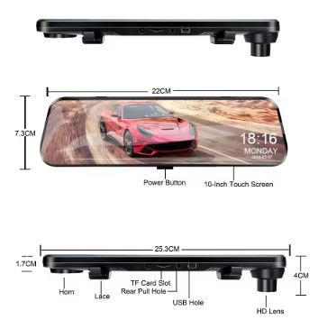 "فروش دوربین ثبت وقایع آینهای Yantop E-ACE + رم 32 گیگ و لوازم جانبی"(10 اینچی)