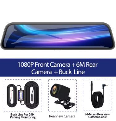 "دوربین ثبت وقایع آینهای Yantop E-ACE 10 اینچی - صفحه لمسی 1080P، لنز دوگانه، رم 32 گیگ و لوازم جانبی کامل"