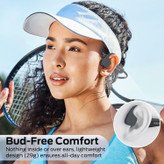 Ultra light 29g bone conduction headset adopts the titanium frame and an ergonomic design, like a nothing on the ear, more comfortable, secure fit, that stays in place when you sport any time.