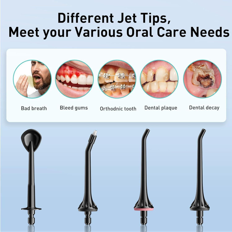 تمیز کردن عمیق، بهبود سلامت: انتخاب نخ دندان بی سیم با تایید متخصصان دندانپزشک آمریکایی، این نخ دندان آب می تواند پالس آب دو رشته ای با فشار آب بالا را 1400-1800 بار در دقیقه و فشار آب قوی 30-150 PSI برای تمیز کردن دندان ها، به آرامی ارائه می دهد. برای لثه های حساس 4 نازل چند منظوره، بقایای مواد غذایی گیر افتاده بین بریس ها را به راحتی حذف می کند، در حال حاضر با مراقبت از دهان و دندان جامع از دندان، لثه و زبان می تواند به علل مشکلات دهان مختلف را حل کند. کرده و از آن جلوگیری کند.