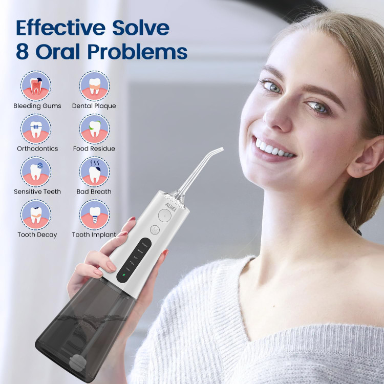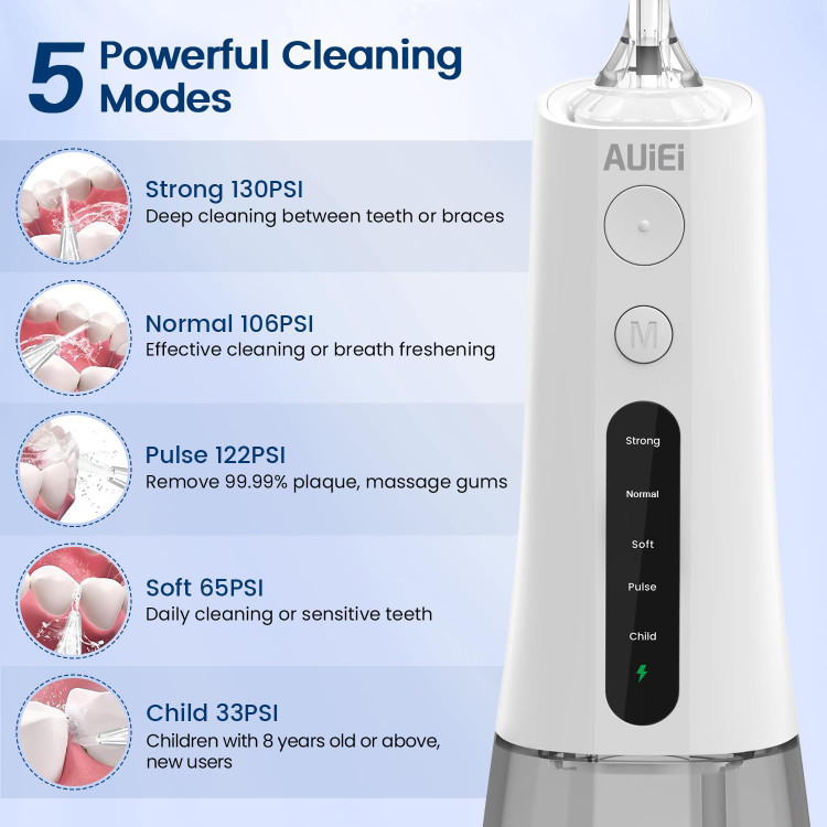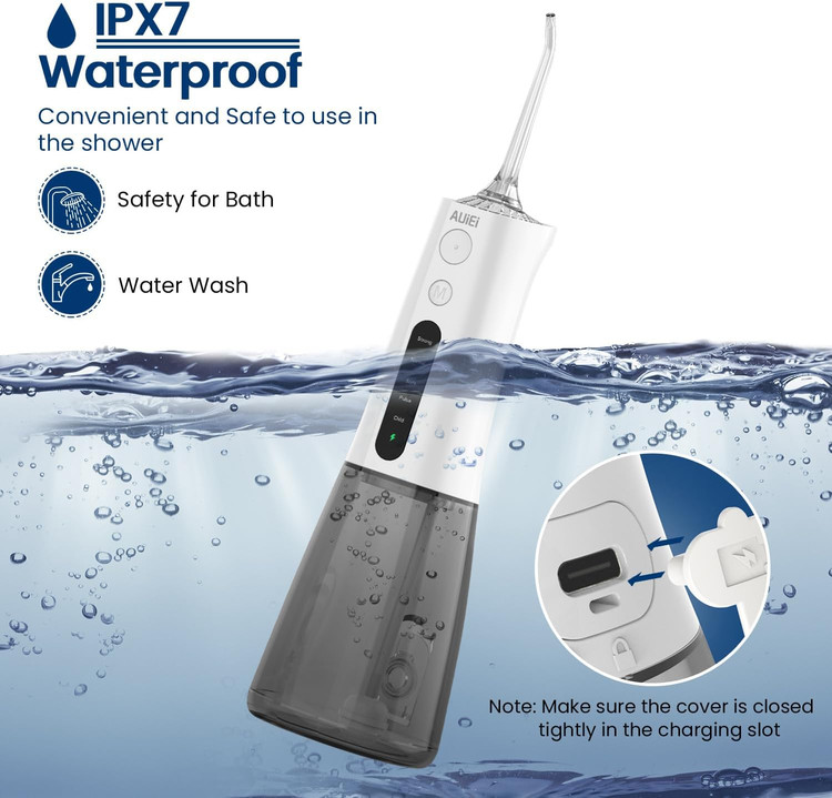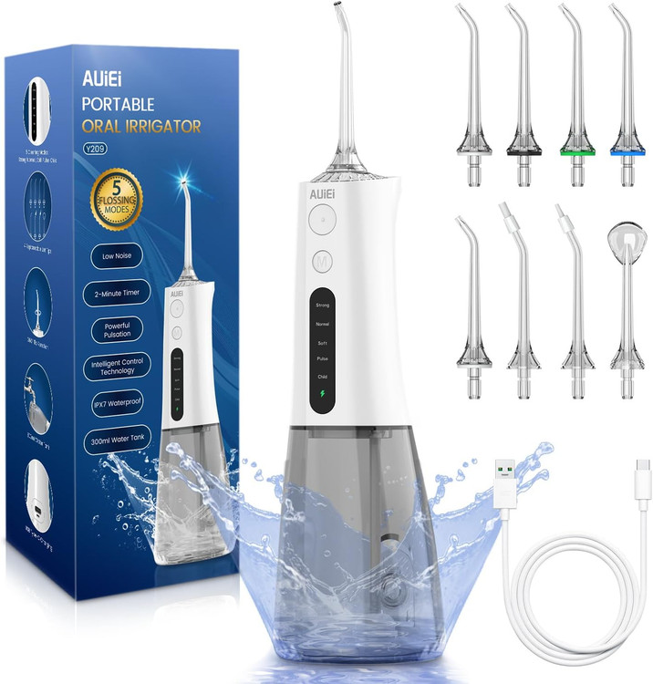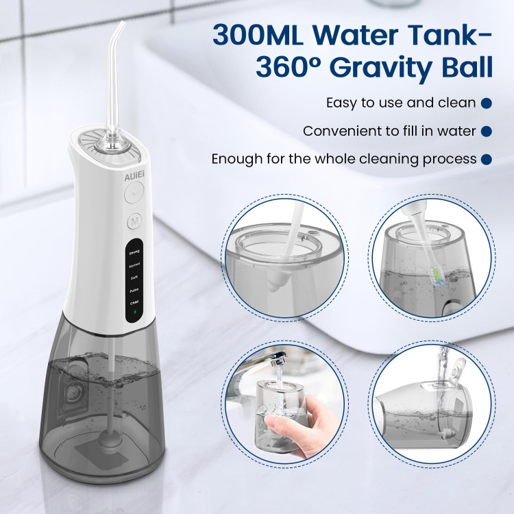 AUIEI Water Flosser for Teeth Cordless Oral Irrigator Portable Dental Teeth Cleaner Picks 300ML 5 Modes, USB Rechargeable & IPX7 Waterproof Plaque Removal Tool for Travel Home Use(White)