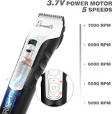 Equipped with super powerful motor that supports 5 speed settings, from 5000rpm to 7000rpm. You can choose suitable speed for different hardnesses and parts of hair, such as ears, paws, soft facial hair.
