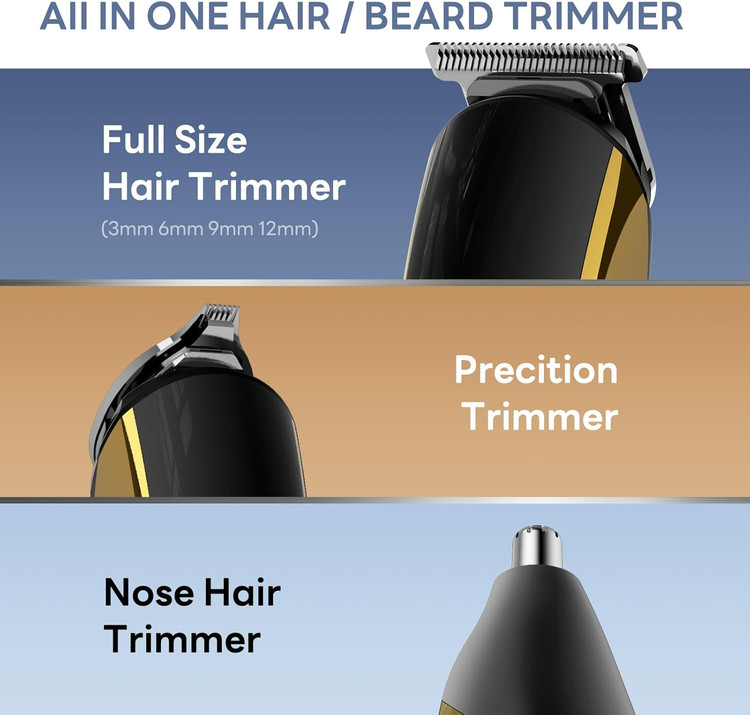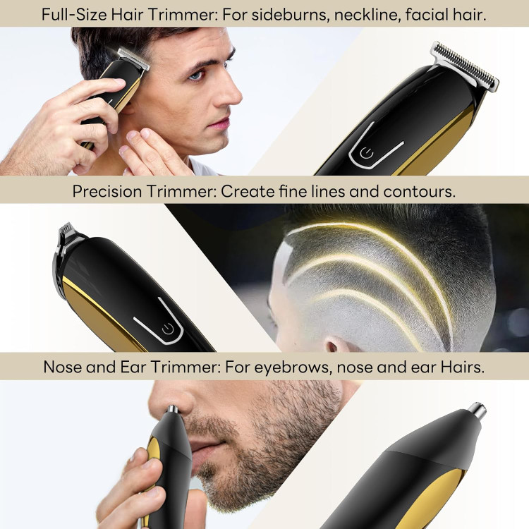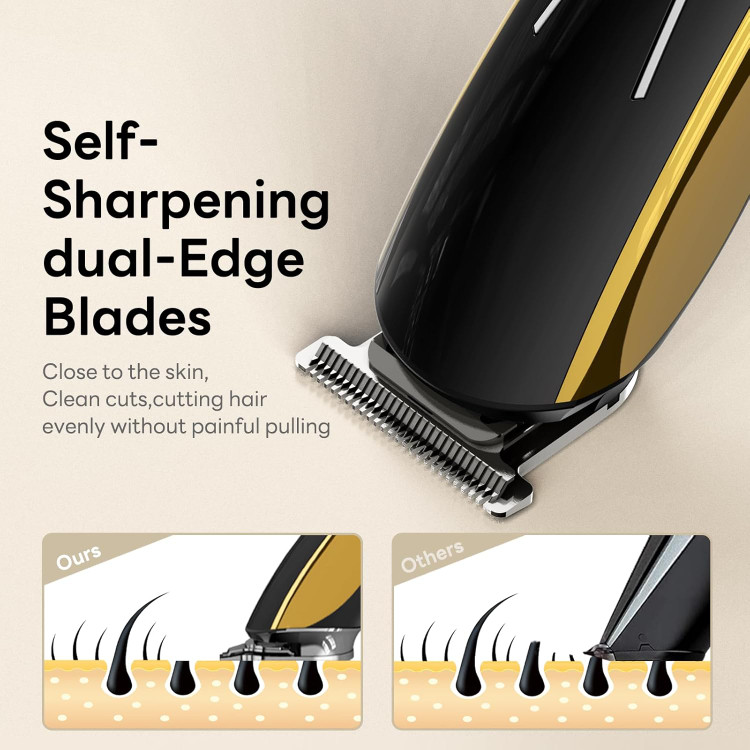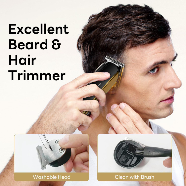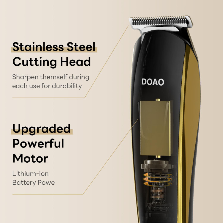 DOAO Beard Trimmer Men,Rechargeable Beard Trimmer&Hair Trimmer with 4 Limit Combs,Stainless Steel Blades,2 in 1 Sharp Blade U Blade,Long Stand-by(100Mins),100% Waterproof, Extra Long Life, Gold