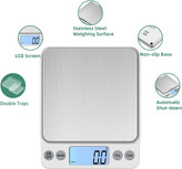 【گستره وسیعی از کاربردها】: ترازوهای الکترونیکی را می توان برای وزن کردن داروها، ادویه جات ترشی جات، جواهرات، غذاهای مکمل و دانه های قهوه استفاده کرد. ترازوی دیجیتال آشپزخانه دارای سینی های دوتایی می باشد که بسته به اجسام مختلف بزرگ و کوچک قابل تعویض مناسب برای انواع سناریوها می توان از آن به عنوان پوشش گرد و غبار در زمان عدم توزین استفاده کرد.