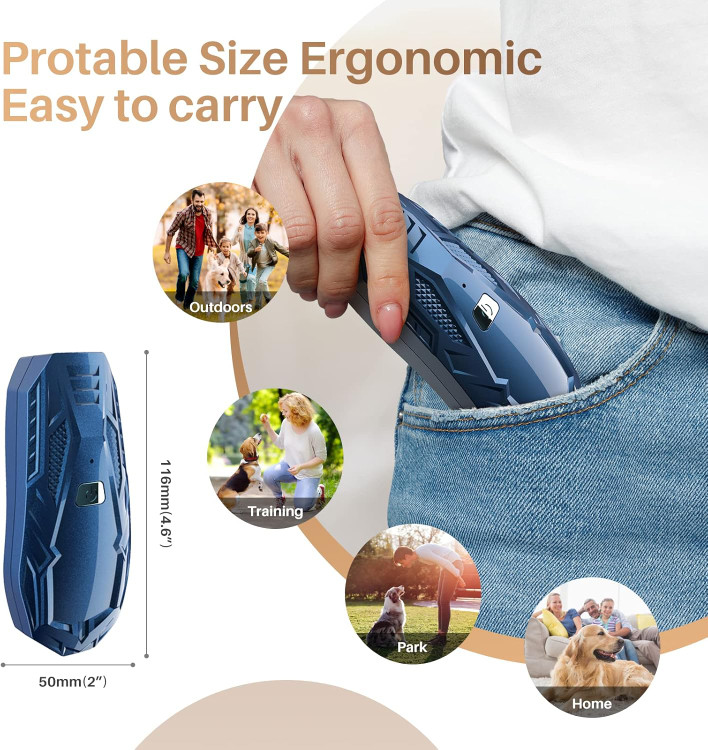 دستگاه ضد پارس دستی قابل حمل: این دستگاه ضد پارس قابل حمل و سبک است، می توانید آن را در جیب خود قرار دهید، با بند دستی و حمل آسان هنگام پیاده روی یا قطار و کنترل پارس سگ ها و همچنین آموزش دستگاه ضد پارس با یک دکمه آسان است. فقط باید دکمه دستگاه ضد پارس را فشار داده و به سمت سگ بگیرید. نشانگر LED برای نشان دادن وضعیت کار به رنگ سبز روشن می شود و صدای اولتراسونیک منتشر می شود.
