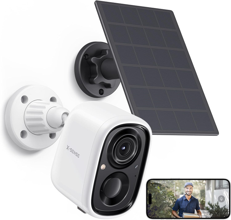 دوربین خورشیدی/باطری سنسور PIR بیسیم دوربین امنیتی X-Sense، دید در شب رنگی 1080p، صدای دو طرفه، IP65 ضد آب، کارت SD، فضای ذخیرهسازی ابری، Wi-Fi 2.4 گیگاهرتز