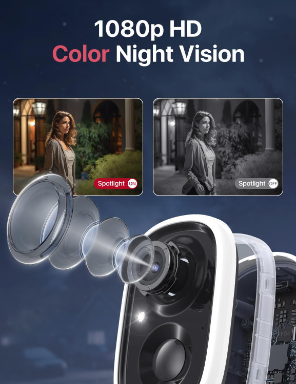 نمایش زنده HD و صدای دو طرفه: با کیفیت ویدیویی 1080p آن، از هر کجا خانه خود را زیر نظر داشته باشید. از طریق دوربین با صدای دو طرفه صحبت کنید. دارای نورافکن روشن برای رنگی و LED مادون قرمز برای دید در شب سیاه و سفید