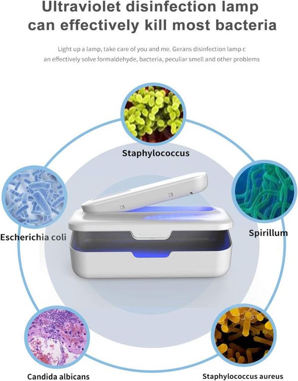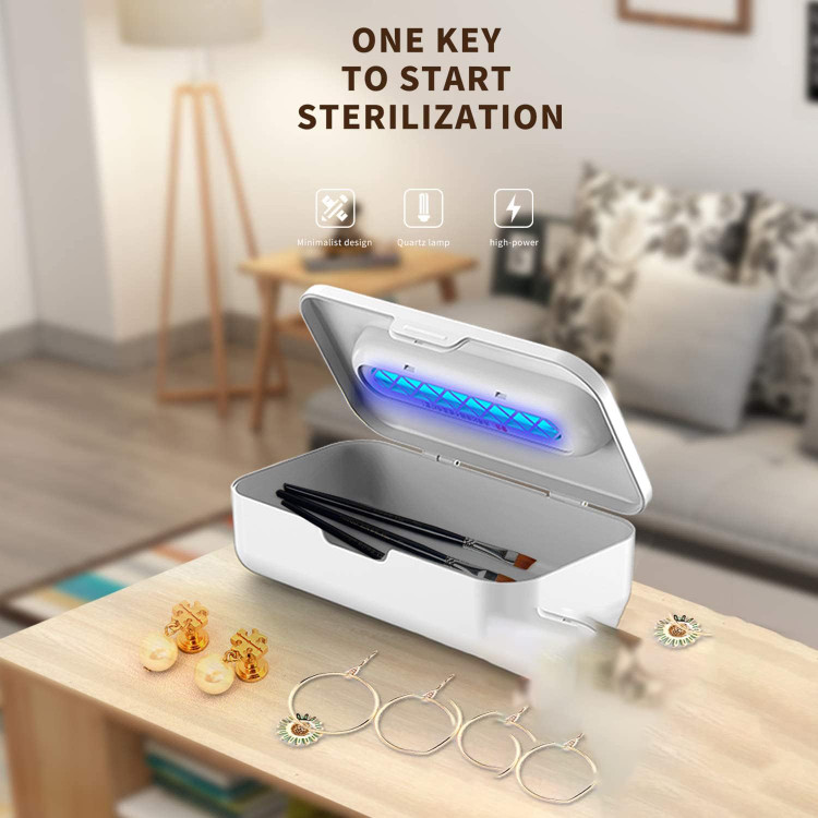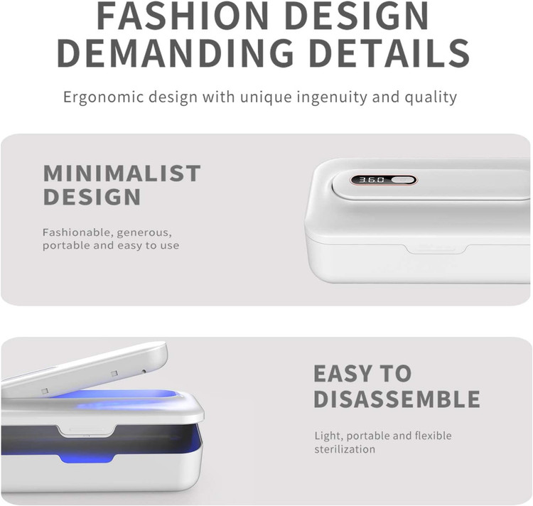جعبه ضدعفونی کننده اشعه ماوراء بنفش، جعبه استریلیزاسیون اوزون شارژر بی سیم چند منظوره با چراغ استریل کننده برای استریل کردن تلفن های همراه، ابزار تمیز کردن لوازم آرایشی، لباس زیر، ناخن، ماسک، ماسک (سفید)