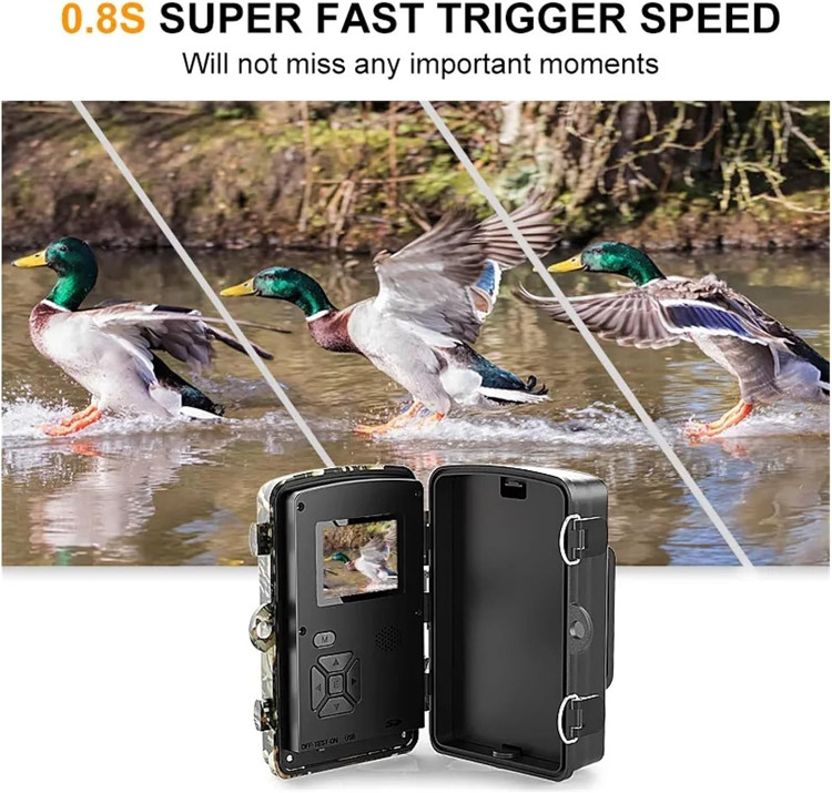 تشخیص حرکت: زاویه تشخیص PIR 120 درجه و سرعت ماشه سریع 0.8 ثانیه ای این اطمینان را ایجاد می کند که هرگز هیچ لحظه هیجان انگیزی را از دست نخواهید داد که تا 3 عکس و 10 ثانیه کلیپ ویدیویی برای هر حرکت شناسایی شده بگیرید.