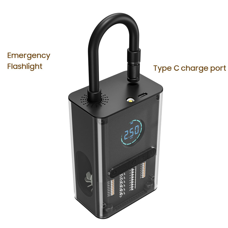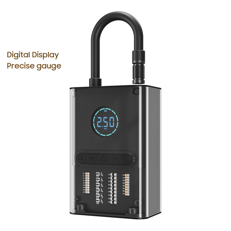 با کمک نمایشگر دیجیتال این پمپ باد، می توان از وضعیت میزان فشار باد فعلی، میزان فشار تنظیمی مد نظر، مد عملکرد دستگاه و همچنین میزان شارژ باتری دستگاه مطلع شد.