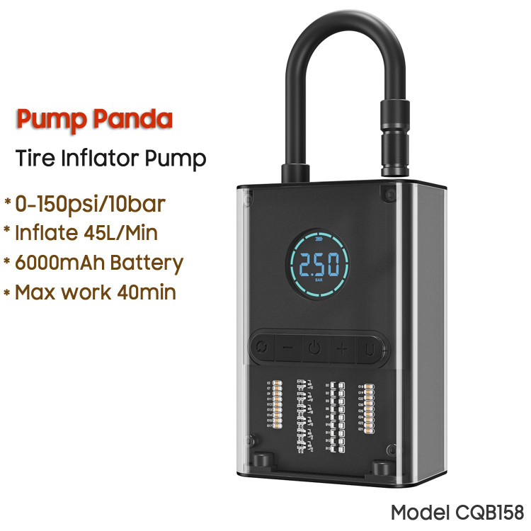 پمپ باد تنظیم خودکار مدل CQB158 دارای باتری 6000 میلی آمپر ساعت انرژی را برای ایجاد فشار مناسب جهت باد کردن لاستیک خودرو، موتور سیکلت، دوچرخه و توپ ورزشی تأمین می کند.