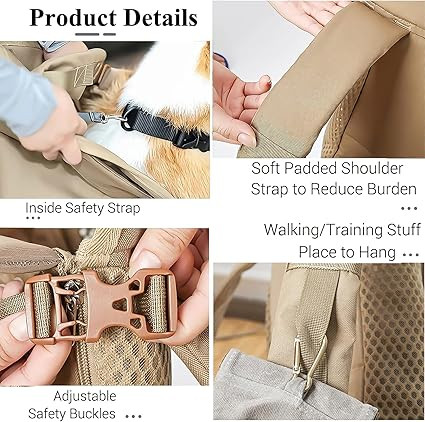 【طراحی قابل تنظیم】--- حامل سگ با یک سگک قابل تنظیم طراحی شده است که مجهز به طناب ایمنی برای جلوگیری از پریدن حیوانات خانگی است و به طور گسترده با اکثر حیوانات خانگی با اندازه متوسط سازگار است. اندازه: متوسط: حدود 55 * 36 سانتی متر / 21.7 * 14.2 اینچ. بزرگ: حدود 71 * 40 سانتی متر / 28 * 15.7 اینچ.