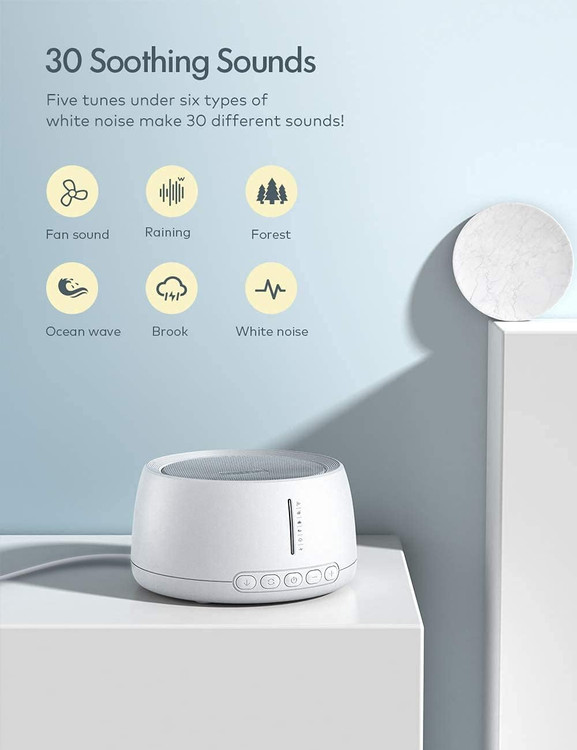 دستگاه وایت نویز، دستگاه نویز سفید رافی، با 30 صدای طبیعی، عملکرد حافظه، تایمر قابل تنظیم، کمک به خواب و تمرکز، ایده آل برای کودکان بزرگسال، شارژ USB N500