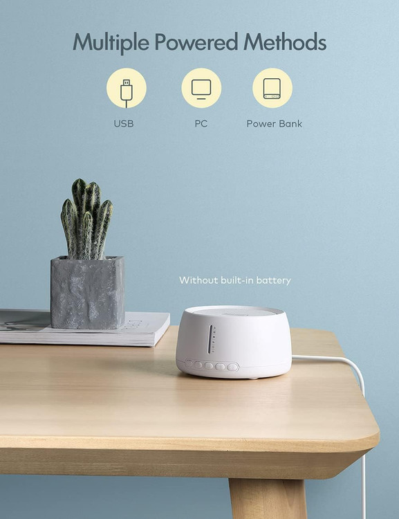 La machine à bruit blanc Roffie N500 avec 30 sons naturels adhère à la création d'un environnement confortable pour votre sommeil et votre travail de haute qualité. C'est un excellent compagnon de votre maison, bureau ou voyage. Il est livré avec un câble USB. Veuillez continuer à brancher pendant l'utilisation.