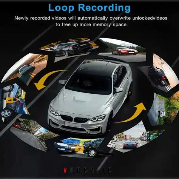 قابلیت Loop Recording: این دوربین خودرویی دارای قابلیتی است که با پر شدن حافظه، فیلمهای قدیمی را بهصورت اتوماتیک حذف میکند. اما باید توجه داشت که فیلمهایی که قفل شدهاند، حذف نمیشوند و برای حذف آنها باید بهصورت دستی اقدام کنید. این ویژگی باعث میشود که همیشه فضای کافی در حافظه دوربین وجود داشته باشد و شما نیازی به حذف دستی فایلها نداشته باشید. این یکی از مزایای استفاده از این دوربین خودرویی است.