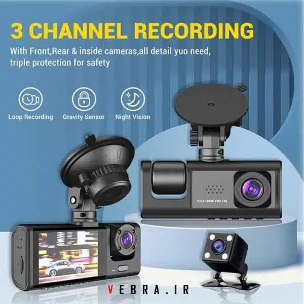 دارای 3 دوربین: این نوع دوربین داخلی دارای 3 دوربین است که باتوجهبه تعداد لنزهای آن امکان ضبط همزمان تصاویر از جلو و عقب یا جلو و داخل اتومبیل را برای شما فراهم میکند. با وجود دوربین عقب خودرو و دوربین داخل کابین میتوان گفت این دوربین خودرو تمام نواحی اتومبیل شما را پوشش داده و خیال شما را از نظارت دقیق خودرو راحت میکند.