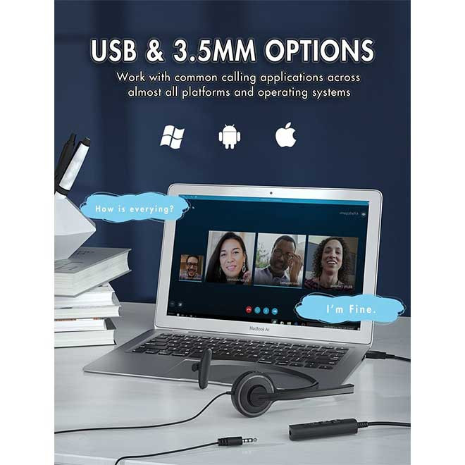 BH323A دارای USB استاندارد و 3 گزینه اتصال 5 میلی متری است که به شما امکان می دهد روی دستگاه های مختلف سازگار با Windows 2000/7/8/10/11/XP/Vista، Mac OS X، iOS و Android کار کنید.