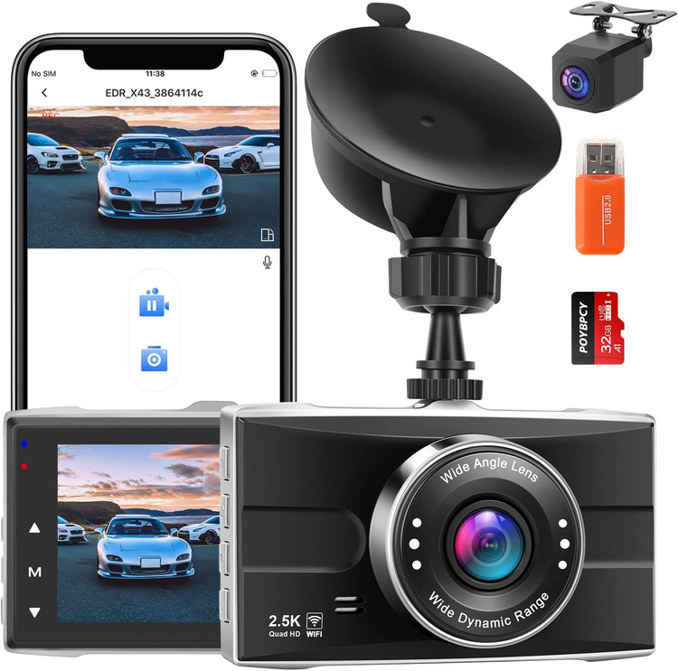 This X43 2.5K dual dash cam supports up to 128GB storage (Box included 32G Card)