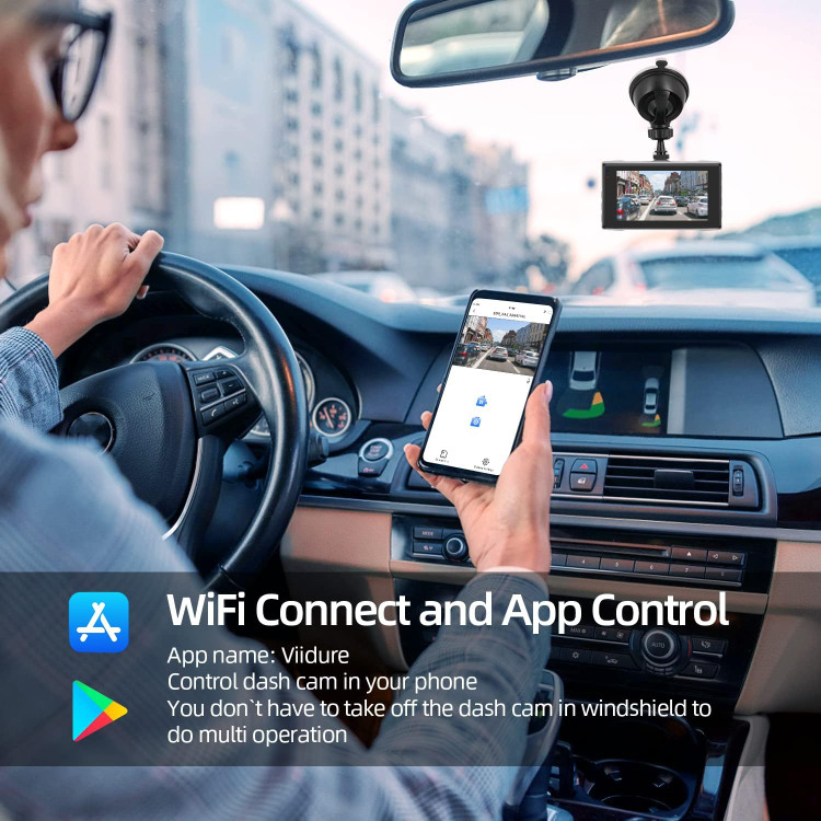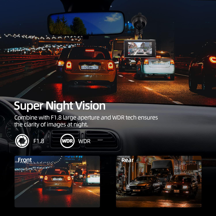 The dash cam front and rear capture the road front (170°) and rear (140°) in details without visual blind zone