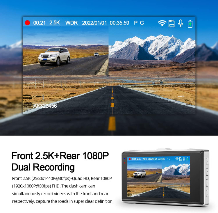 (2560x1440P@30fps) Quad HD 2.5k Front + (1920x1080P@30fps) Full HD 1080P Rear