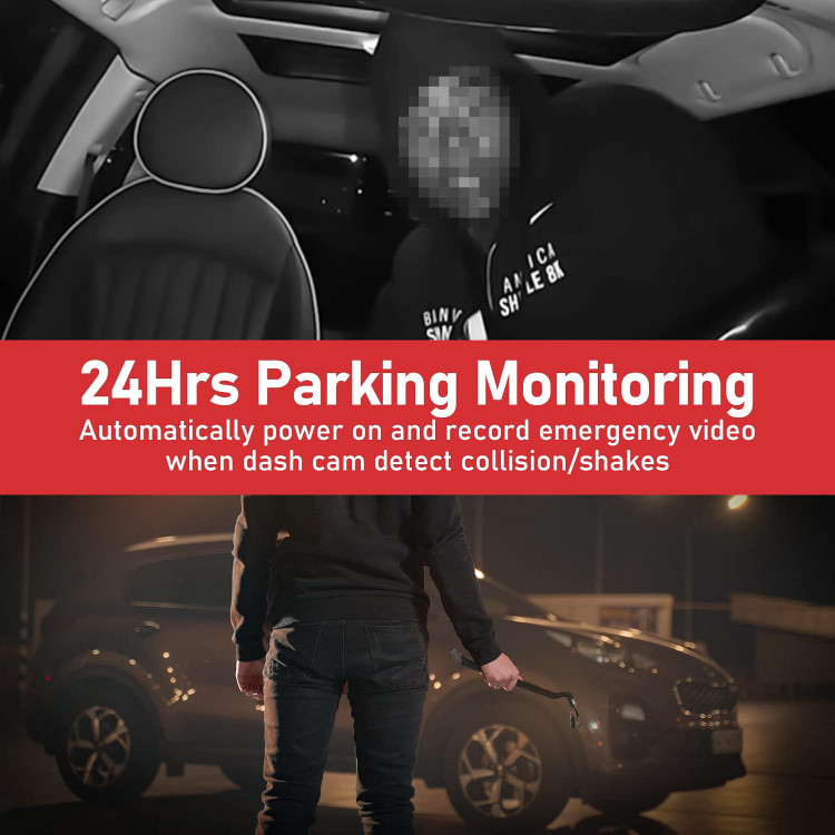 【نظارت پارک 24/7】عملکرد مانیتور پارکینگ به طور خودکار روی داشبورد فعال می شود و در صورت برخورد یا برخورد پس از خاموش شدن موتور، فیلم اضطراری را ضبط می کند. دوربین داشبورد را با استفاده از کیت سیم سخت (فروش جداگانه، ASIN: B08RS3Z8M6) به فیوز وصل کنید تا حتی در زمانی که موتور خاموش است ضبط شود.