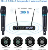 سیستم میکروفون بی سیم شارژی موجود در بازار با این قیمت، میکروفون بی سیم شارژی دوگانه UHF با سیستم گیرنده بلوتوث. ایده آل برای کارائوکه، سخنرانی، جلسه، مهمانی، هیئت، عروسی، دی جی، اجرا، داخل یا خارج از خانه. نیازی به تنظیم نیست، فقط وصل کنید و استفاده کنید