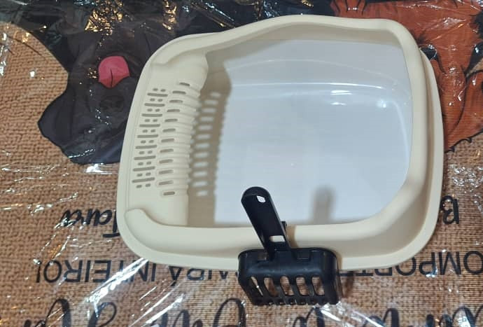 ظرف خاک و توالت گربه و بیلچه با طراحی مناسب و کاربردی ( 30X35 در ارتفاع 17) رنگ سفید کرم ( رنگ روشن)- تهران فوری