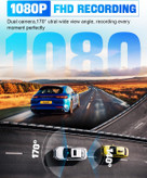 - Supports Full HD 1080P recording, which clearly capture the road front and back, read the license plates easily and capture all the details during journeys and provide evidence in emergency or for insurance claim.