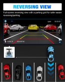 This dash camera display screen will automatically show full rear view with parking guide lines when the car reverse gear is engaged. The waterproof rear view camera will help you to park your car easily and safely.