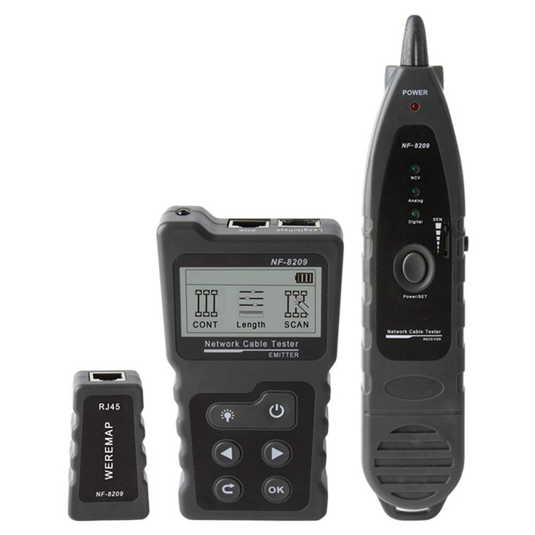 تهران - تستر کابل شبکه NF-8209 ردیاب سیم ابزار شبکه اسکن کابل وایرمپ تستر CAT5 CAT6 اندازه گیری طول کابل، تست PoE، عملکرد NCV