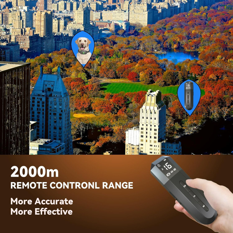 Dog training collar is designed for up to 2000M remote range so you can easily train your dog in the yard,park or anywhere.