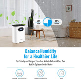 【استفاده آسان و مصرف کم انرژی】 برای استفاده کافیست دکمه ON/OFF را فشار دهید. وقتی دستگاه کار می کند، چراغ کنترل به رنگ آبی روشن می شود. هنگامی که مخزن آب پر از آب است، صفحه نمایش قرمز می شود و به طور خودکار کار نمی کند. توان خروجی تنها 42 وات و مصرف برق رطوبت گیر بسیار کم است و این بدان معناست که می توان در مصرف انرژی بیشتری صرفه جویی کرد.