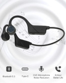 IPX5 ضد آب - هدفون های هدایت استخوانی ضد آب ما کاملاً ضد عرق و ضد آب هستند. شما از عرق ورزشی و آب و هوای بد ترسی ندارید، گوشی های هد هدایت استخوانی در برابر عرق، گرد و غبار و رطوبت مقاوم هستند. (نه برای شنا)