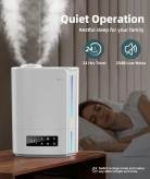 رطوبت ساز قوی، مناسب برای اتاق خواب و اتاق کودک: رطوبت ساز اولتراسونیک ما دارای یک مخزن بزرگ 6 لیتری (1.6 گالن) است که در اتاق های بزرگ تا 500 فوت مربع عالی عمل می کند. اجازه می دهد تا رطوبت طولانی مدت تا 60 ساعت.