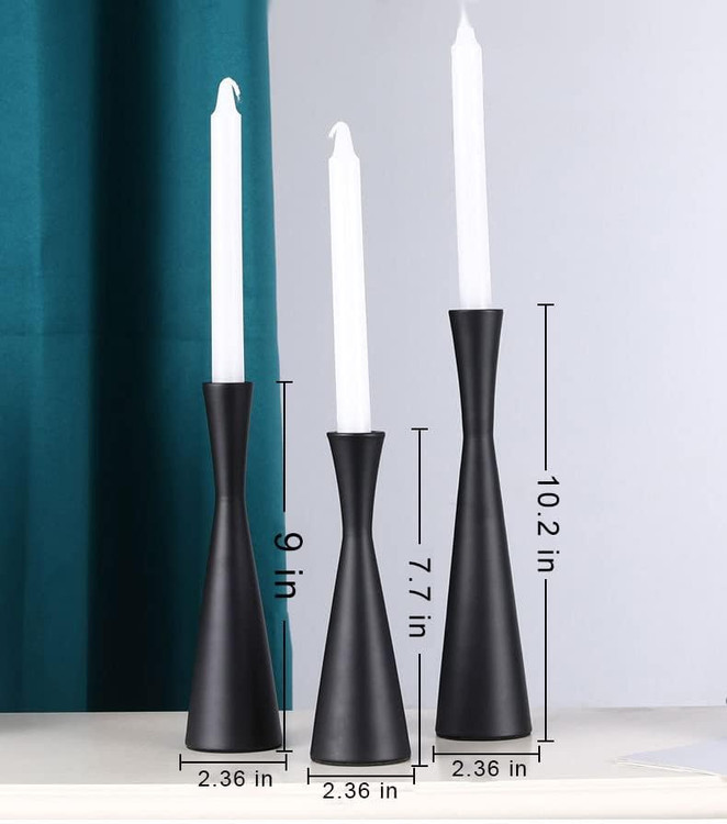 درباره اندازه: سه جا شمعدانی در اندازه های مختلف. ارتفاع: L-10.24 اینچ، M-9.05 اینچ، S-7.48 اینچ. قطر پایه 2.52 اینچ است. مناسب برای شمع های ضخامت 0.9 اینچ و شمع های مخروطی LED