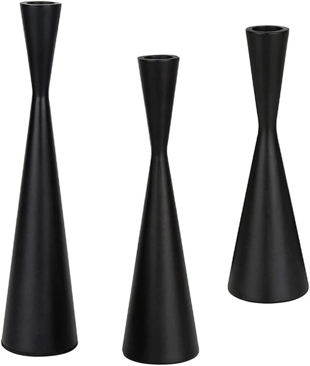 ست شمعدانی فلزی ست 3 عددی، شمعدان پایه میز وسط، شمع گیر ستونی بلند، تزیینی برای تولد و عروسی و نهارخوری و مهمانی و منزل (مشکی)