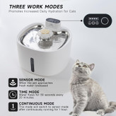 our Wireless Cat Water Fountain! It's smart, it's efficient, and it's got your cat's back with three awesome modes: the 'Smart Sensing Mode' that springs into action when your pet's nearby, the 'Reliable Timing Mode' for regular water refreshes, and the 'Efficient Mixed Mode' that's both clever . Keep your feline friend happy and hydrated with a water fountain that's as innovative as it is caring.