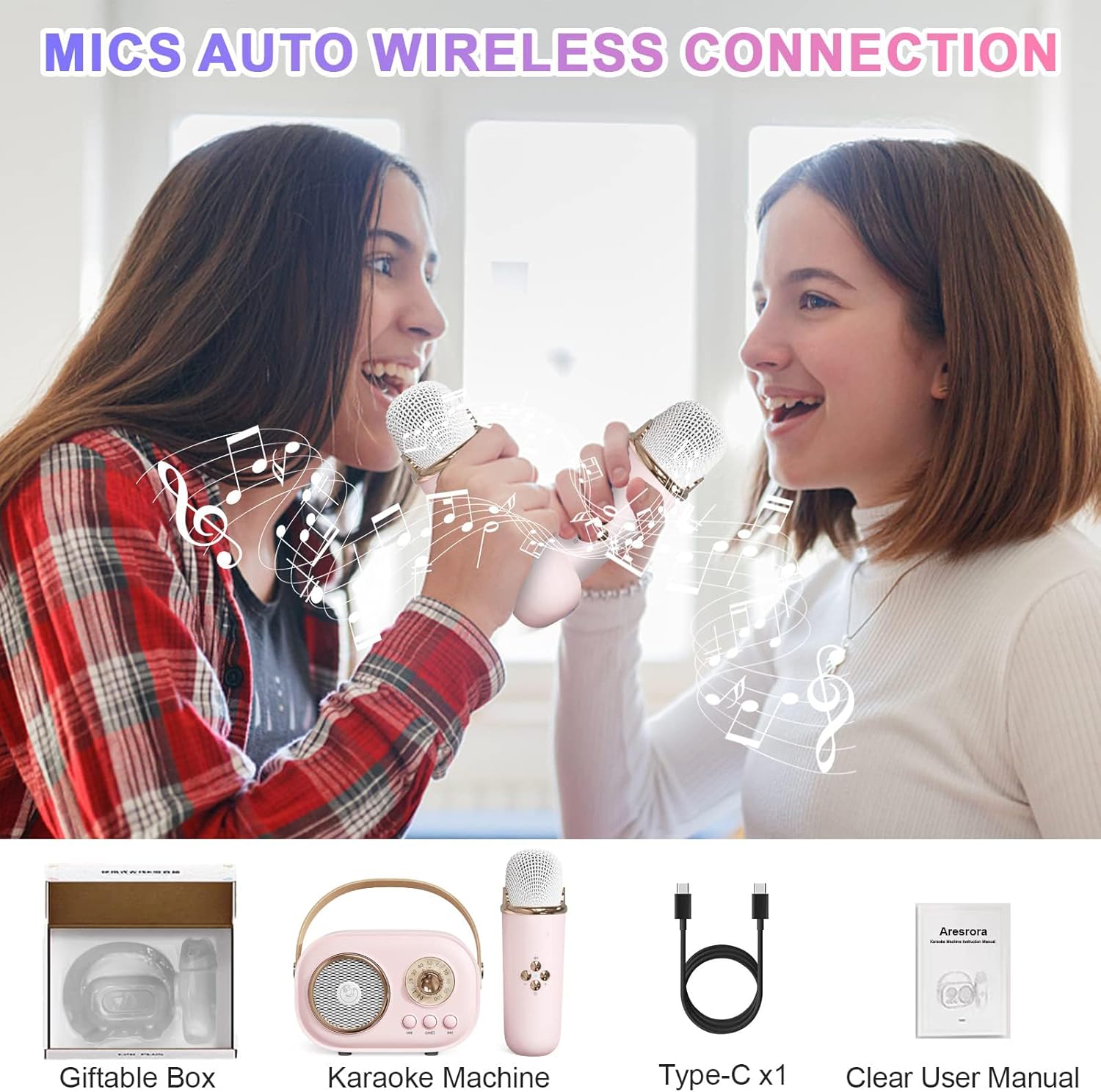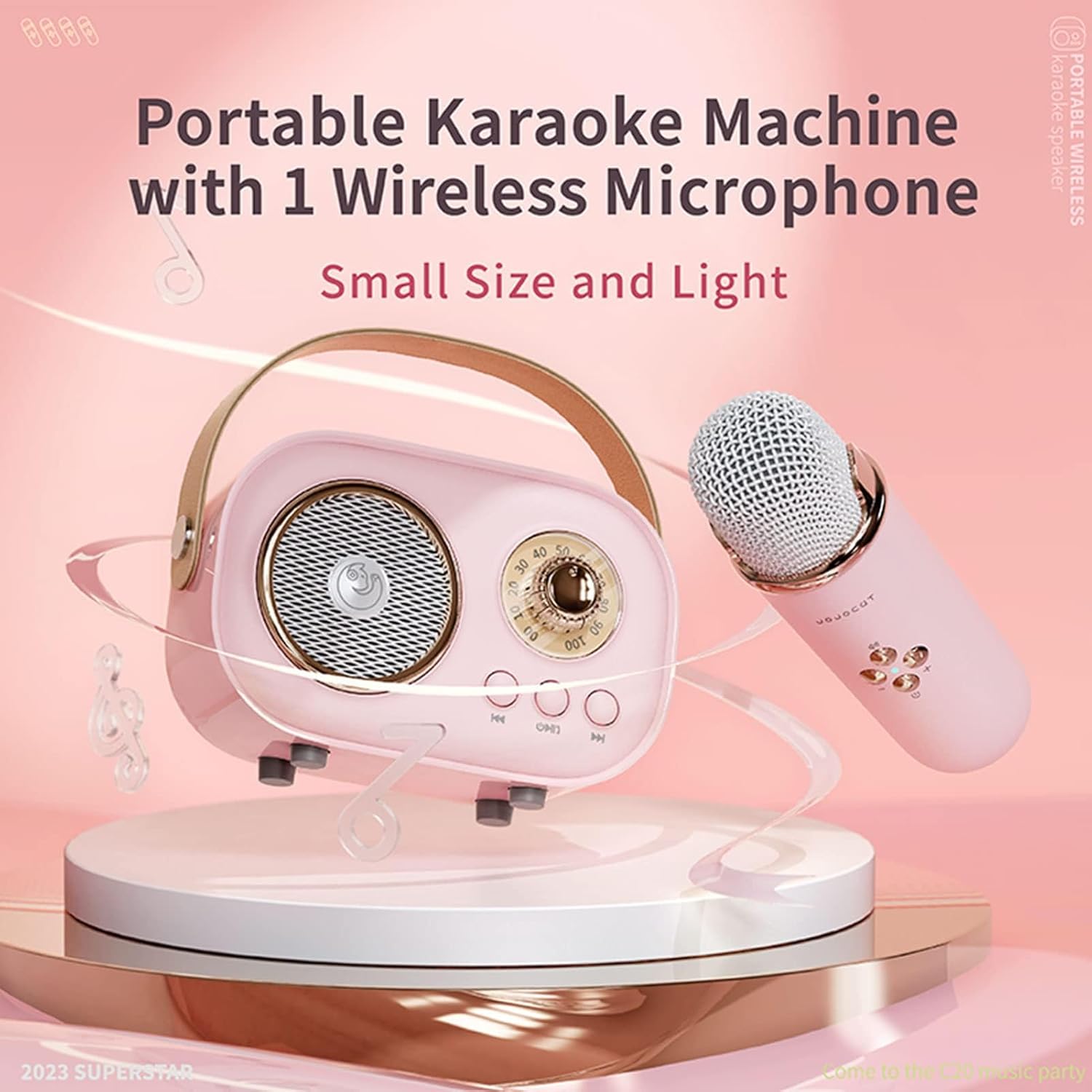 - Pick up this cute karaoke machine and wireless microphone,enjoy your moving party,packed into a pop star surprise in its karaoke prime.This petite-sized karaoke set allows you to easily bring over to your family and friends house for a fun night belting out anything.