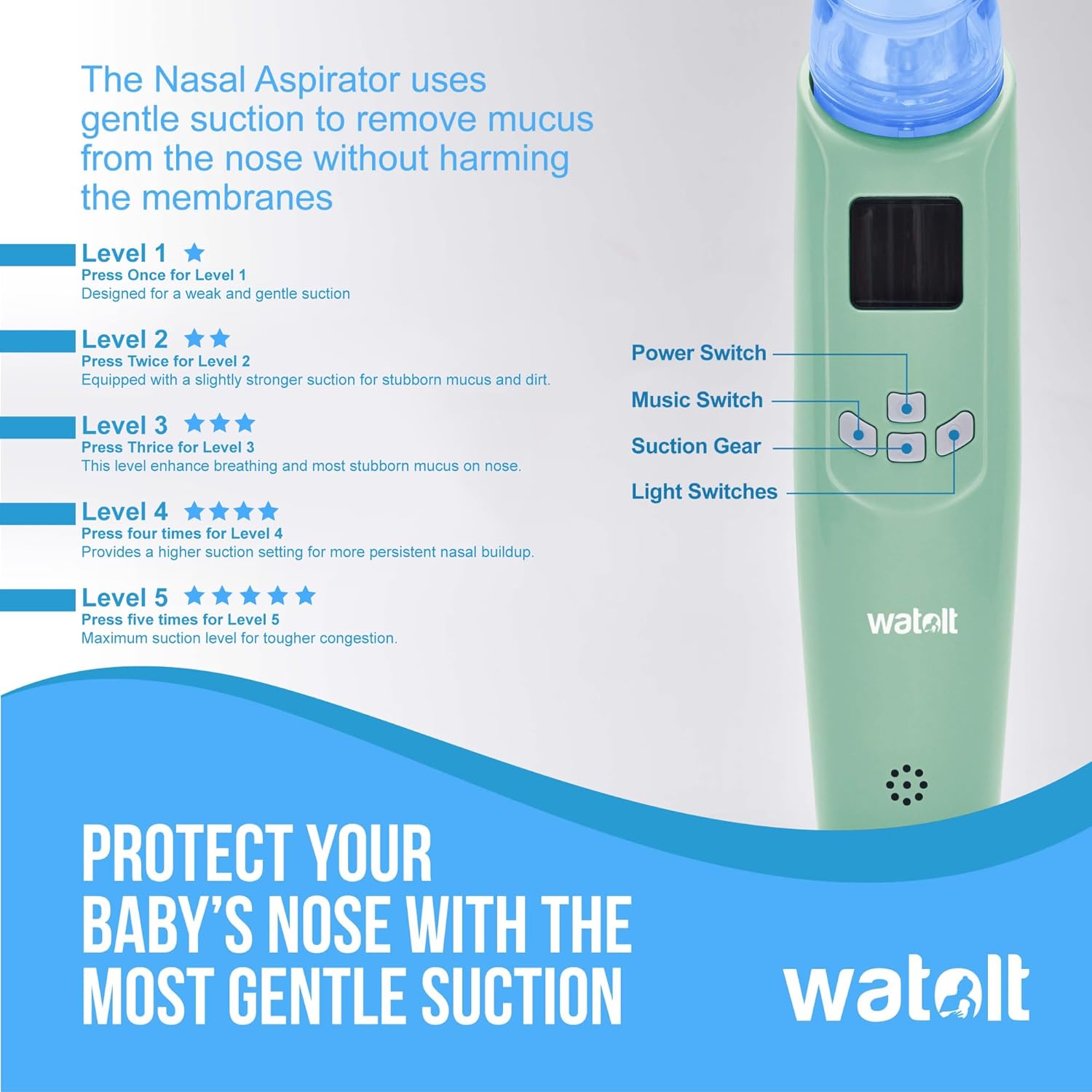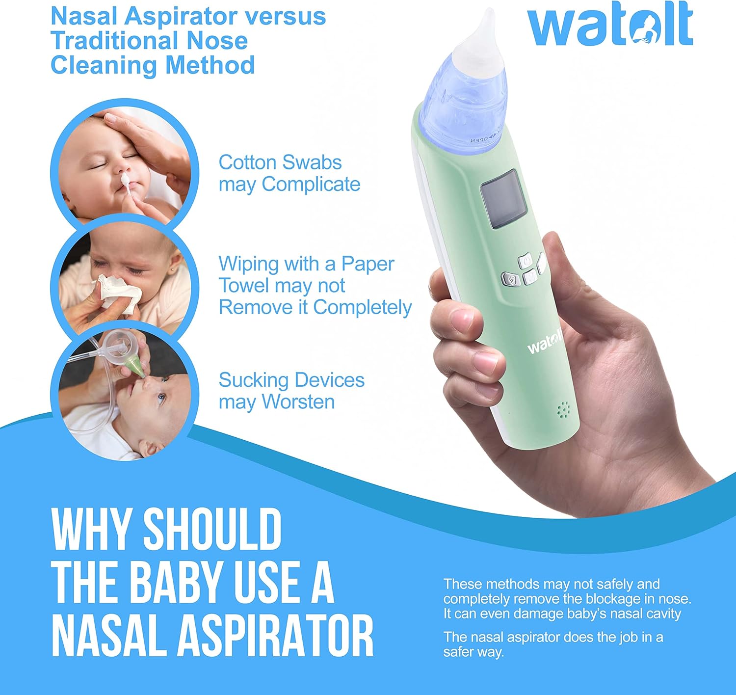 دستگاه مکنده بینی کودک - ساکشن برقی بینی برای نوزاد - مکنده اتوماتیک بینی برای نوزادان - پاک کننده خلط بینی باتری دار برای کودکان نوپا