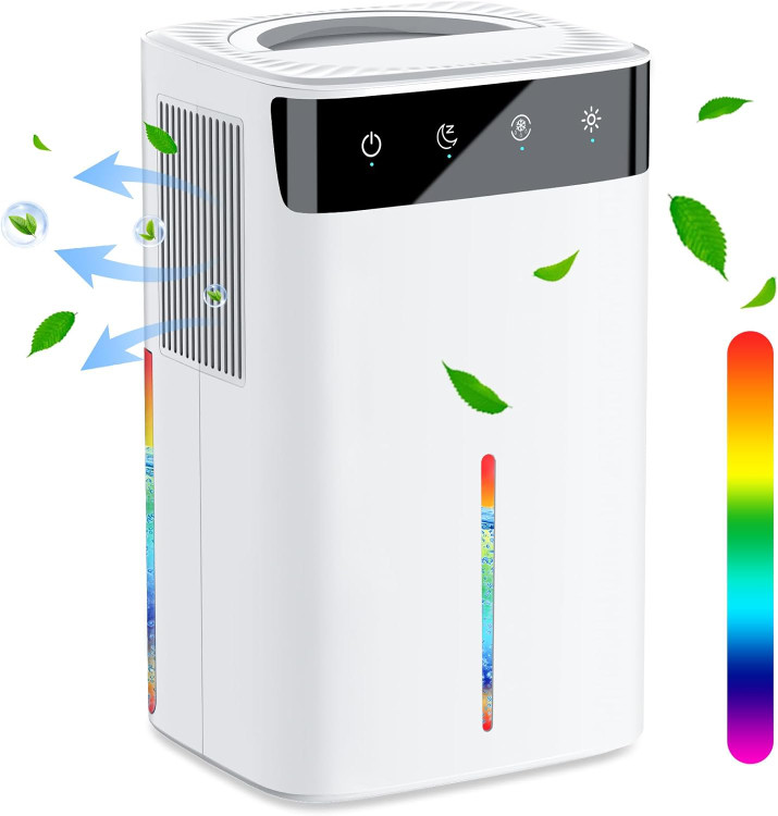 - <30dB Low Noise & Colorful Light:Bedroom Dehumidifiers run quietly. Less than 30 dB sleeping mode so that you wont feel disturbed when sleeping. The air dehumidifier equppied with the colorful lights provide the light you need when getting up at night. (Note: Colors can be steady on and turned off )
