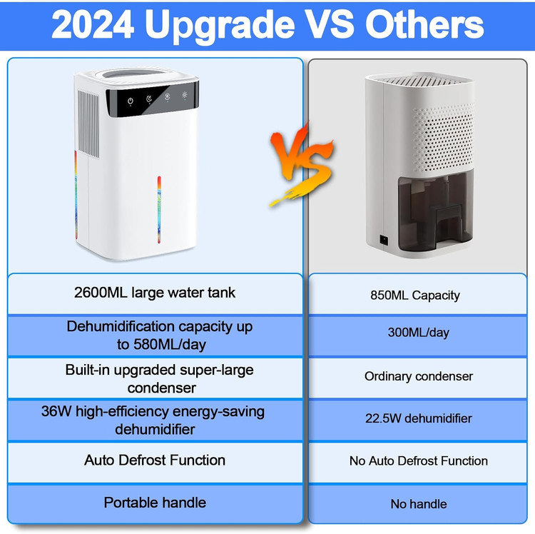 2.6L High-Efficiency Dehumidifiers for Home- Auto Deforst & Shut Off, Portable Ultra Quiet Dehumidifiers for Bathroom, Wardrobe, Caravan RV Room