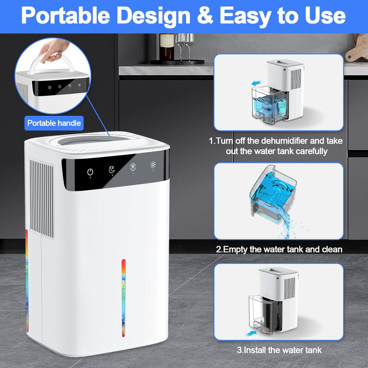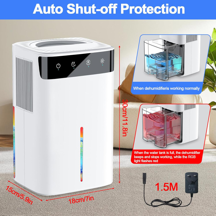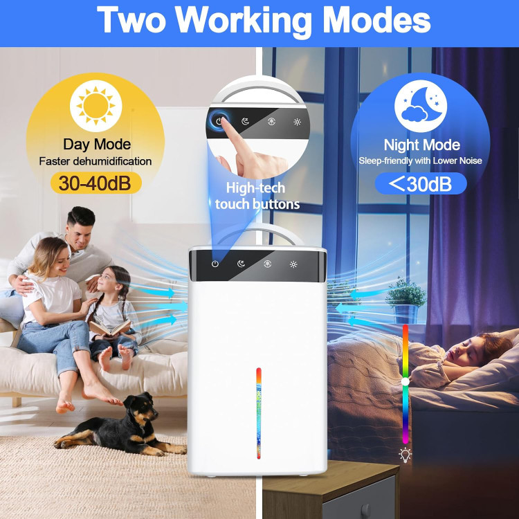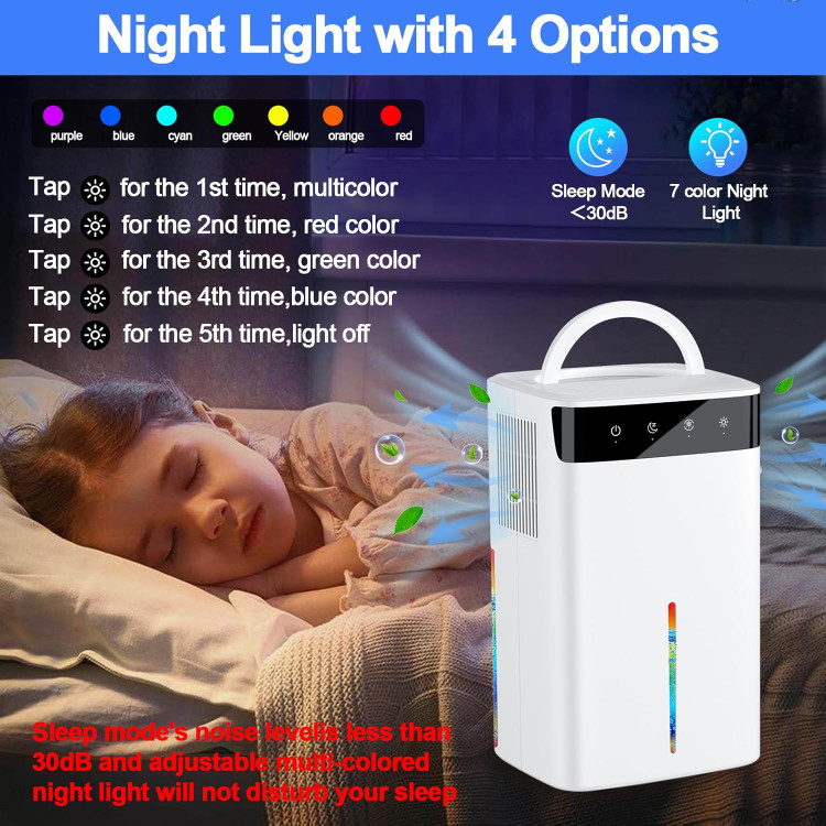 <30dB Low Noise & Colorful Light:Bedroom Dehumidifiers run quietly.