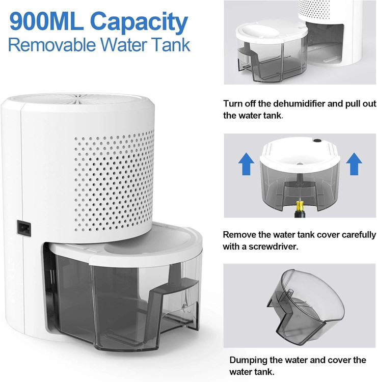 【900ML مخزن بزرگ آب و خاموش شدن خودکار Waterfull】300 میلی لیتر در روز، این رطوبت گیر می تواند به مدت 3 روز کار کند (مطابق با واقعیت). شما نیازی به توجه زیادی به مخزن ندارید زیرا این رطوبت گیر می تواند به طور خودکار در هنگام پر شدن آب خاموش شود.