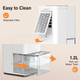 خاموش شدن خودکار - رطوبتگیر با یک ویژگی ایمنی طراحی شده است که هنگام پر شدن مخزن آب، به طور خودکار کار را متوقف میکند و یک چراغ قرمز چشمک میزند تا به شما یادآوری کند که آن را خالی کنید. مخزن بزرگ شفاف دارای ظرفیت ۱۲۰۰ میلیلیتر (۴۰ اونس) است و به شما امکان میدهد حجم جمعآوری آب را در زمان واقعی مشاهده کنید.