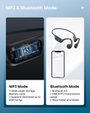حافظه داخلی MP3 32 گیگابایتی - هدفونهای شنا زیر آب، حافظه داخلی 32 گیگابایتی، قادر به ذخیره حداکثر 6000 آهنگ و پشتیبانی از فرمتهای مختلف مانند MP3، WMA، WAV، APE، FLAC. توجه: برای تغییر حالت بلوتوث و حالت MP3، روی دکمه پاور دوبار کلیک کنید.