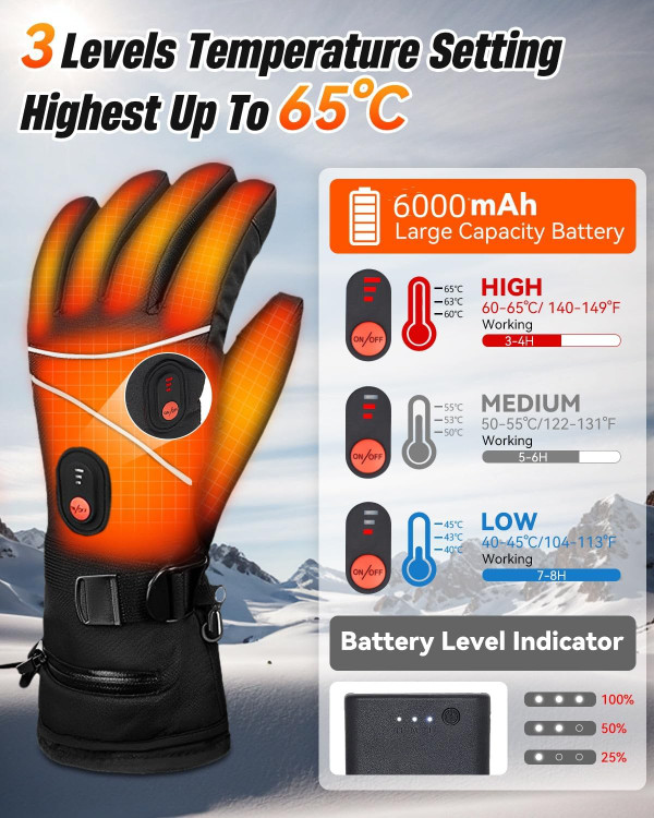 دستکشهای گرم ارتقا یافته قابل شارژ برای راحتی نهایی: این دستکشهای گرم قابل شارژ، ترکیبی منحصر به فرد از گرما و عملکرد را ارائه میدهند. دستکشهای گرم ما با داشتن یک لایه بیرونی ضد آب و ضد باد، همراه با یک کامپوزیت پشمی گرم، شما را در هر محیط بیرونی راحت نگه میدارند. با یک باتری قدرتمند 7.4 ولت 6000 میلیآمپر ساعتی، میتوانید در طول روز از گرمای طولانی لذت ببرید و این دستکشها را برای اسکی، پیادهروی یا هر فعالیت زمستانی ایدهآل میکند.