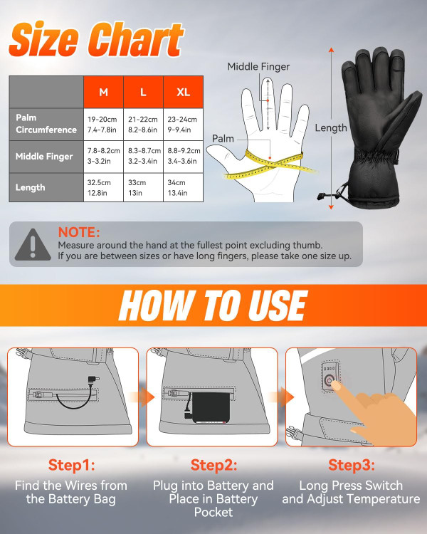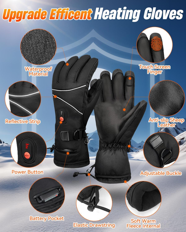 دستکشهای گرم شونده، دستکش گرمایشی لورتا برای آقایان وخانومها ، دستکشهای گرم شونده ضد آب و ضد باد برای خانمها، دستکشهای گرم شونده با قابلیت تنظیم حرارت ۳ سرعته از طریق USB، قابل شارژ با صفحه لمسی برای موتورسیکلت، دوچرخهسواری، اسکی، هدیه زمستانی